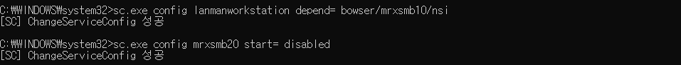 1) sc.exe config lanmanworkstation depend= bowser/mrxsmb10/nsi