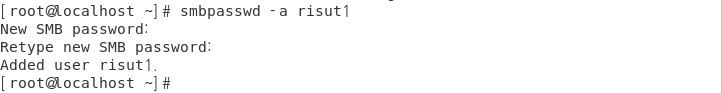 - 현재 일반 계정 risut1이 생성되었다. 그러나 리눅스에서 일반계정과 smb계정은 따로 관리되기에
