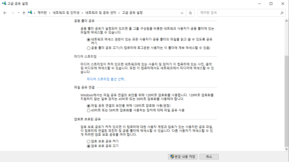 네트워크 액세스 권한이 있는 모든 사용자가 공용 폴더의 파일을 읽고 쓸 수 있도록 공유 켜기 를 활성화