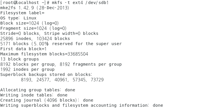 명령어 : mkfs -t ext4 /dev/sdb1