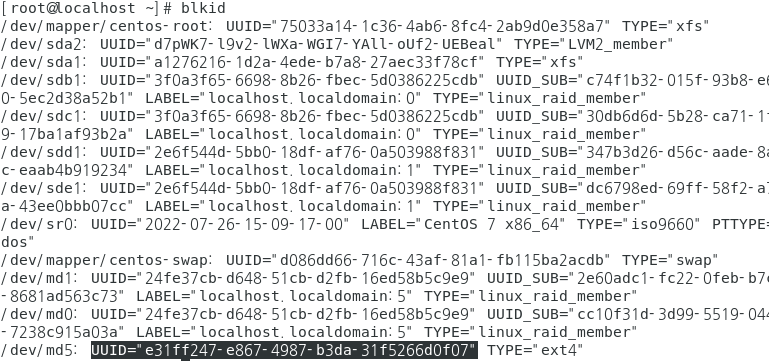 /dev/sde1 2048 208895 103424 fd Linux raid autodetect