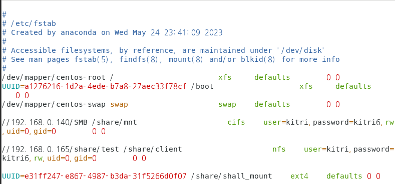 자동 설정 파일 경로 : /etc/fstab