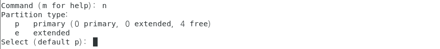 ~> n을 입력하니 기본 디스크로 설정할 것인지, 확장 디스크로 설정할 것인지 나온다.