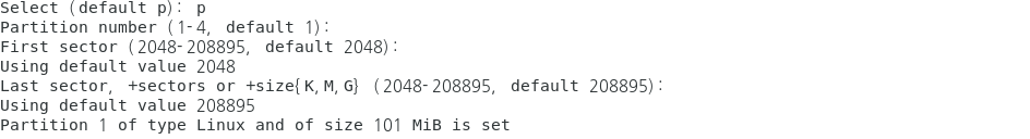 /dev/sdb1 2048 208895 103424 fd Linux raid autodetect