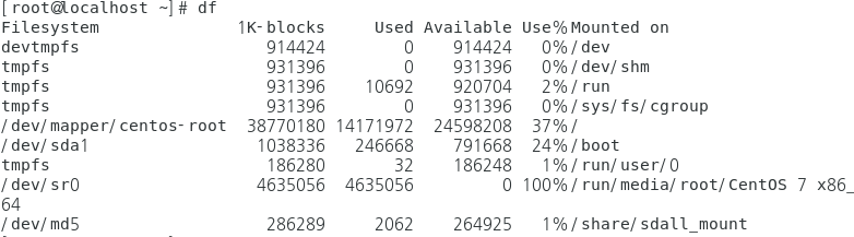 - 현재 사용 가능한 디스크 목록 출력 : df