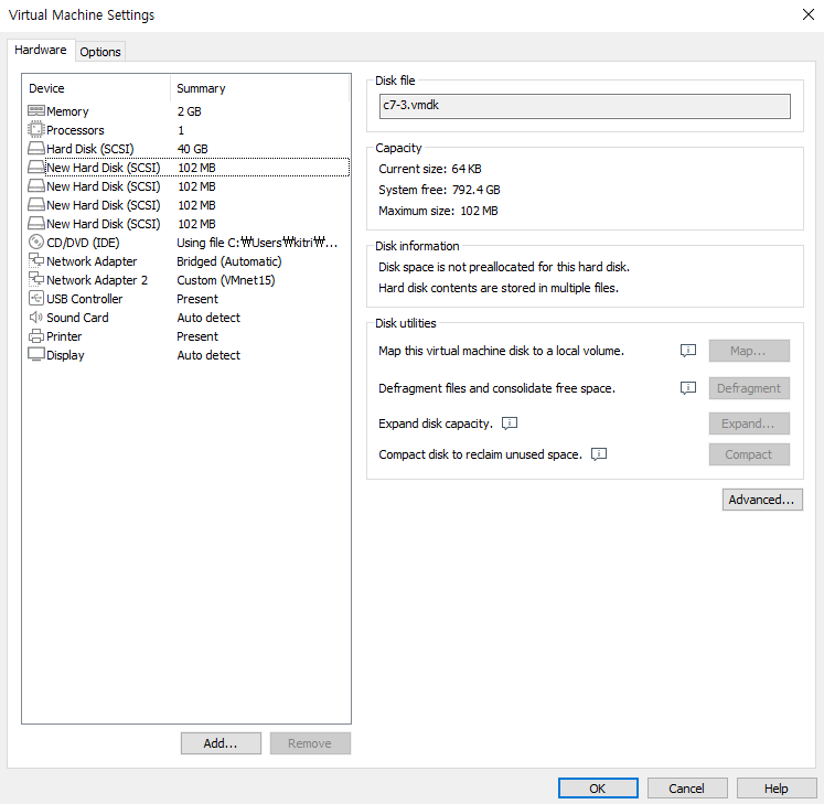 현재 C7 1개의 물리 디스크 :sda