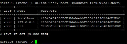 select user, host, password from mysql.user;