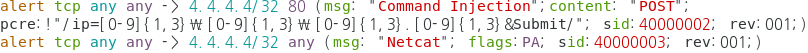 Netcat과 Command Injection 공격이 들어온 것을 snort로 탐지했다.