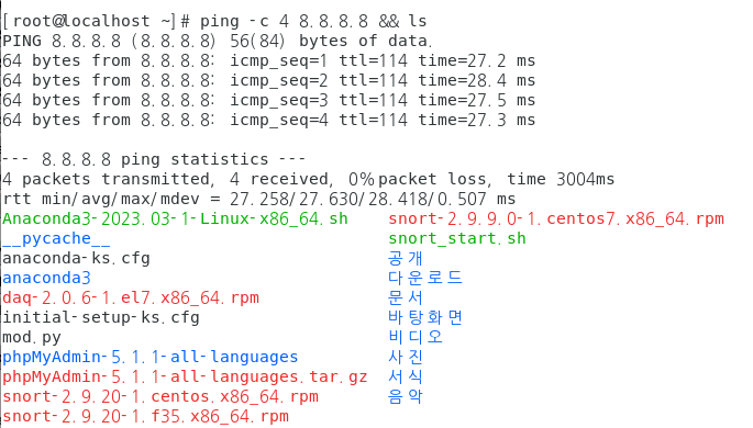 ping -c 4 8.8.8.8 && ls를 하면, ping을 보낸 후 ls 명령을 실행한다.