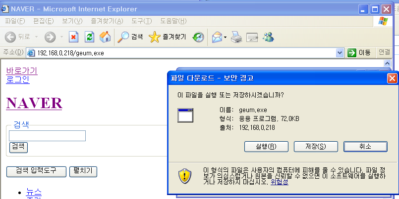 피해자가 브라우저에 경로를 입력 시 악성코드가 다운로드 된다.